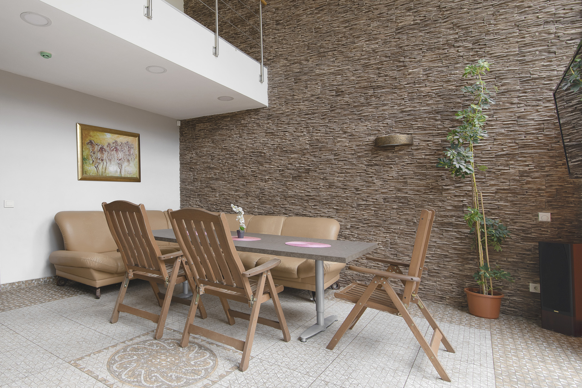 • Salė talpina 13-15 žmonių, miegamos vietos- 4.